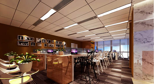 這里甚至使用了開敞式的裝飾手法,辦公區(qū)的墻上的文化展示起到提升企業(yè)形象的作用。它的辦公區(qū)裝飾得非常簡(jiǎn)約大氣,提升企業(yè)的凝聚力。